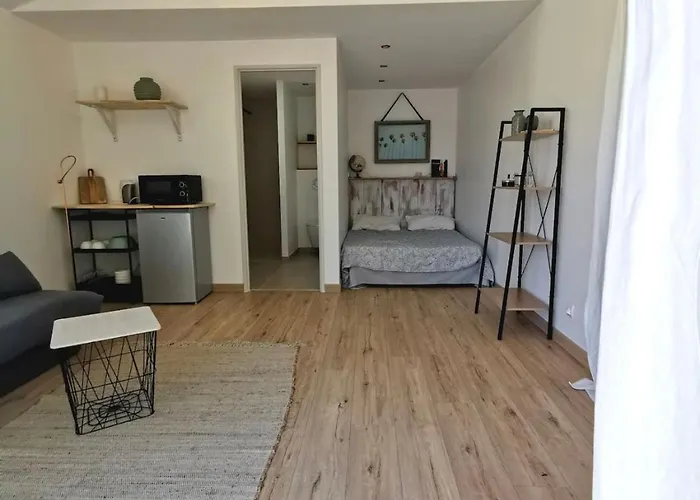 Jolie Suite Baignee De Lumiere lägenhet ligger cirka 2 km från Chapelle Sainte-Madeleine, och ståtar med utsikt över trädgården. Lägenheten har 1 sovrum och 1 badrum samt en terrass.